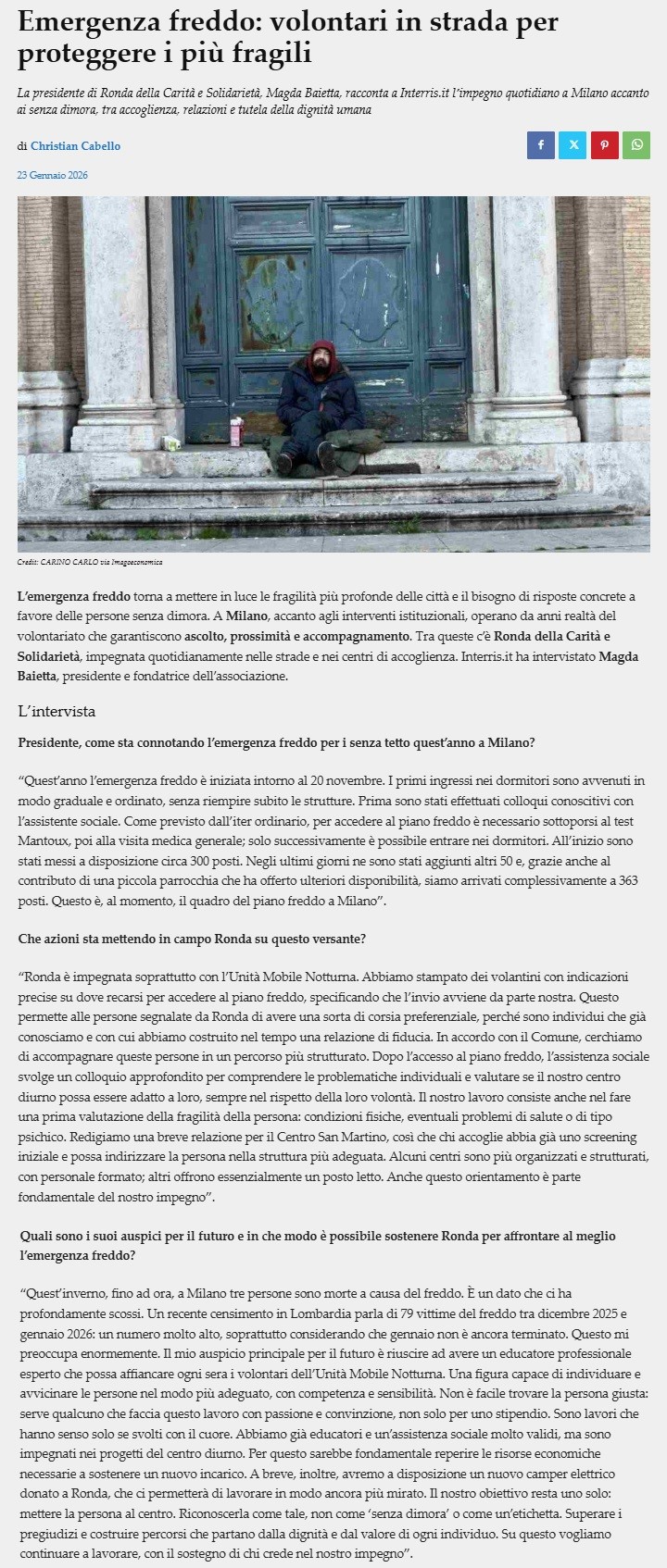 Emergenza freddo: volontari in strada per proteggere i più fragili